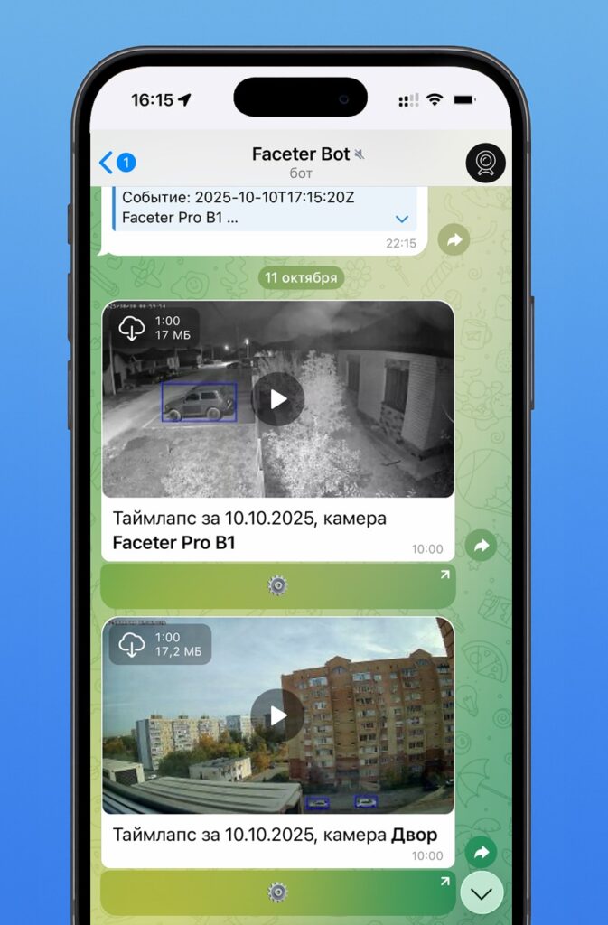 Видео автоматически отправляется в Telegram: пользователю остается просто нажать «воспроизвести» и посмотреть, что произошло за сутки.