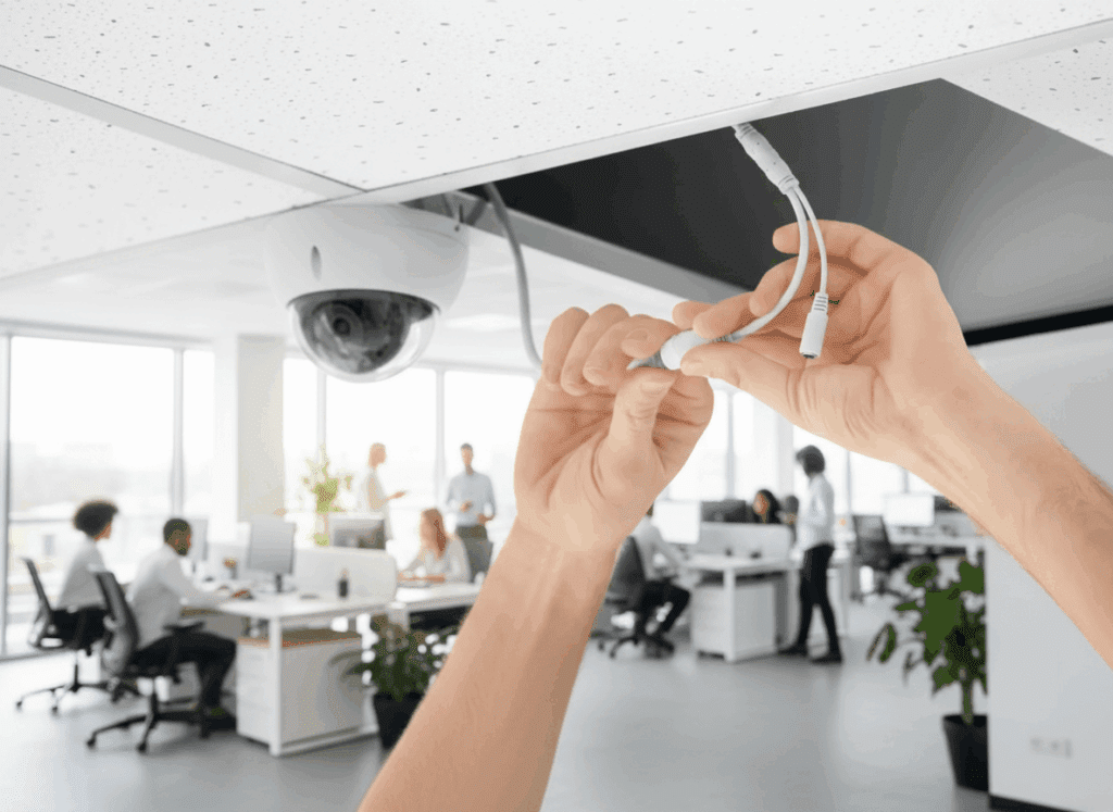 Как правило, проводные IP-видеокамеры безопасности закрепляются на поверхностях (на стене, потолке) и подключаются к источнику электрического питания. Второй кабель соединяет видео фиксирующий прибор с сетевым устройством, которое также нуждается в электричестве.