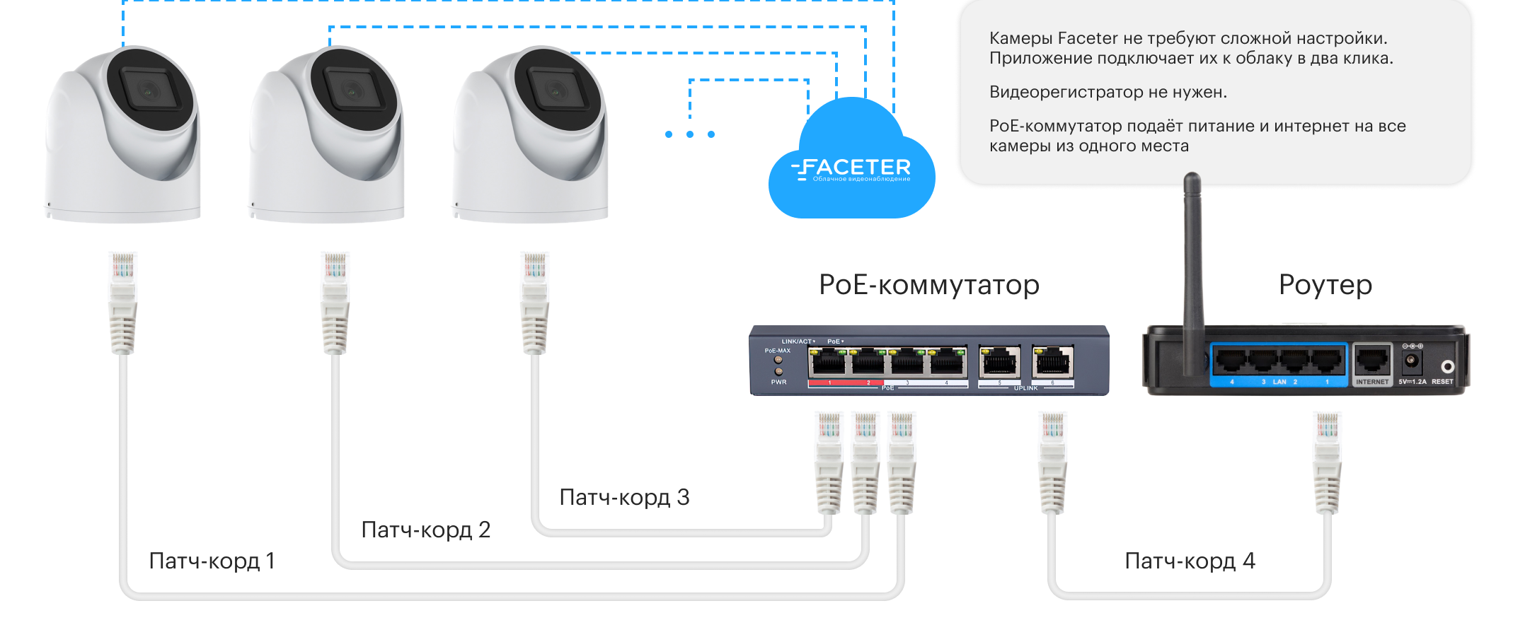 Подключение проводных видеокамер создаёт надежную, безопасную локальную систему для наблюдения на объектах любых масштабов и не требует Wi-Fi-подключения.